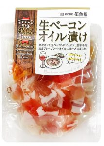 伍魚福の大坂萌果です。 本日は、9月1日発売の「生ベーコンオイル漬け」をご紹介します!