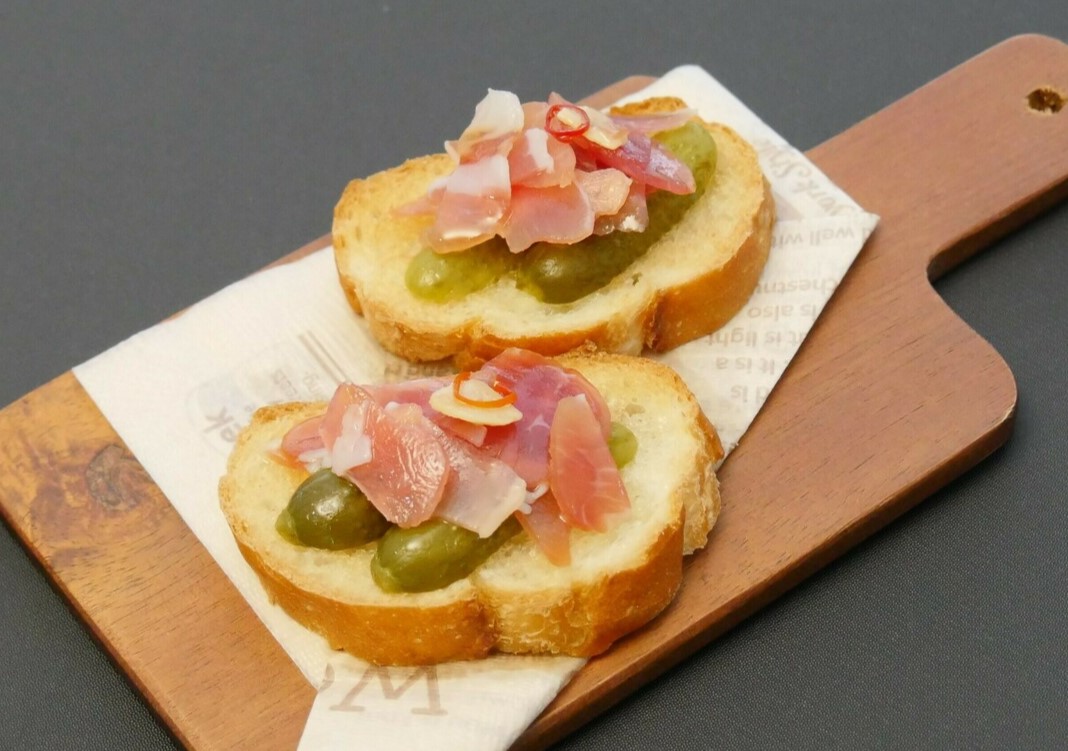 生ベーコンに唐辛子とガーリックチップを加え、イタリア産のグレープシードオイルと合わせた商品です。