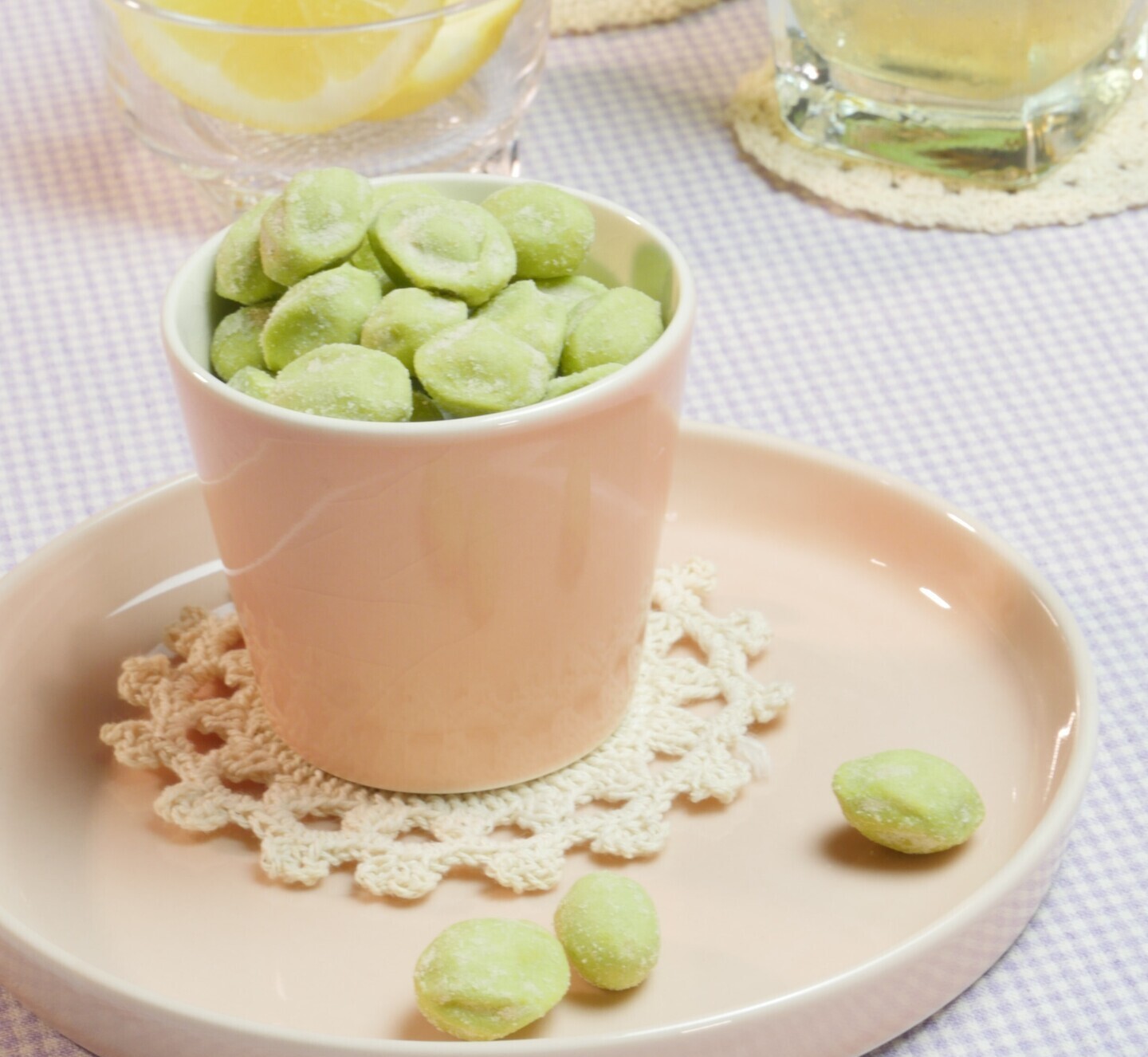 殻から外したピスタチオにカマンベール味のころもをつけました!
