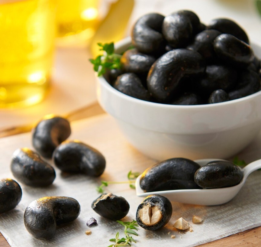 カシューナッツを国産の備長炭入りころもでコーティングしています。
