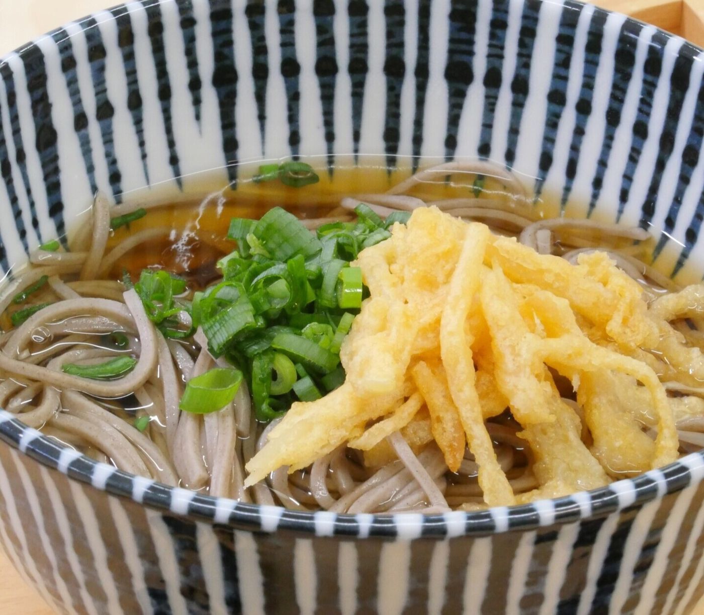 サクッとした食感を楽しんだあと、おそばのつゆをしみ込ませてしっとりさせて、2度おいしさを味わえますよ。