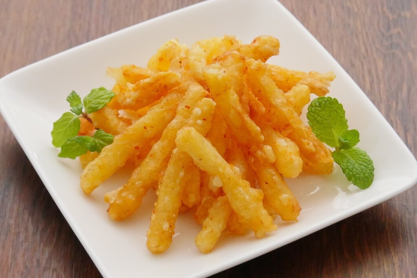 1本1本、手作業で丁寧に揚げたこだわりのチーズ天です。