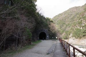 後で調べると、もともとはトンネルの右側、川沿いに線路があったそうです。