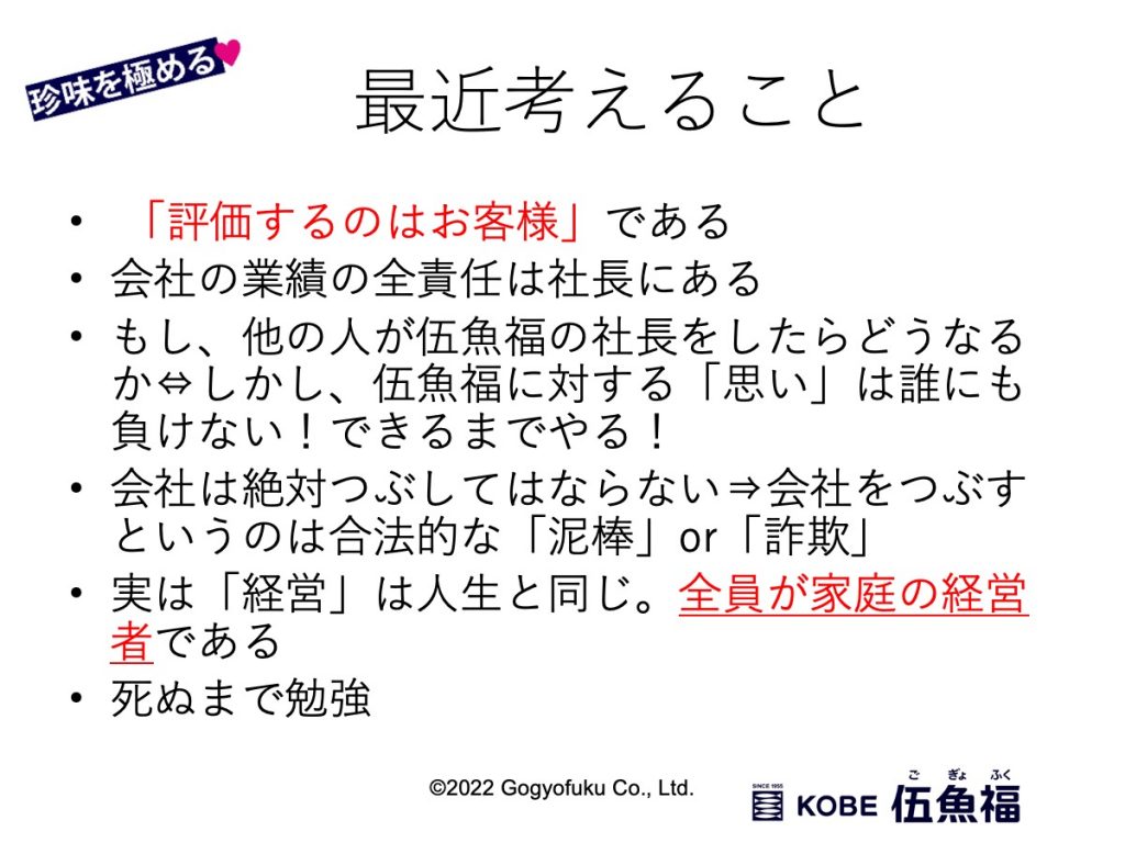 タイトルはいつも通り「神戸で一番おもしろい会社を目指して」。