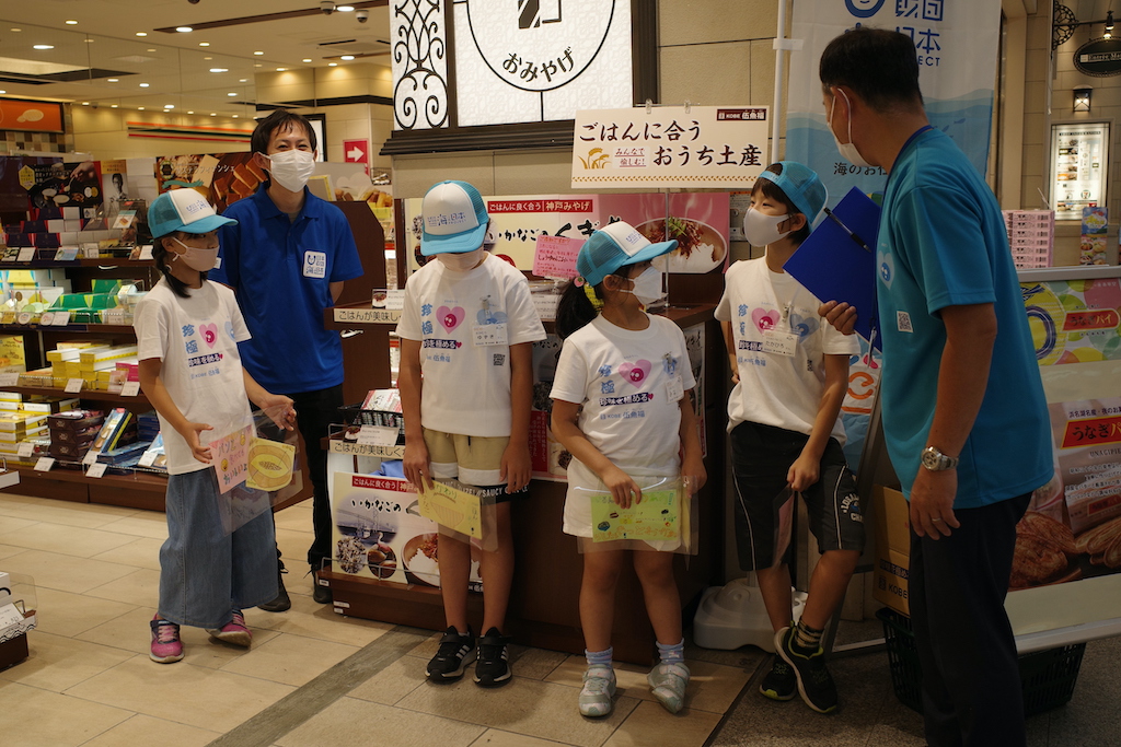 今日1日は、子供たちも伍魚福社員です、と説明すると真剣な眼差しに。