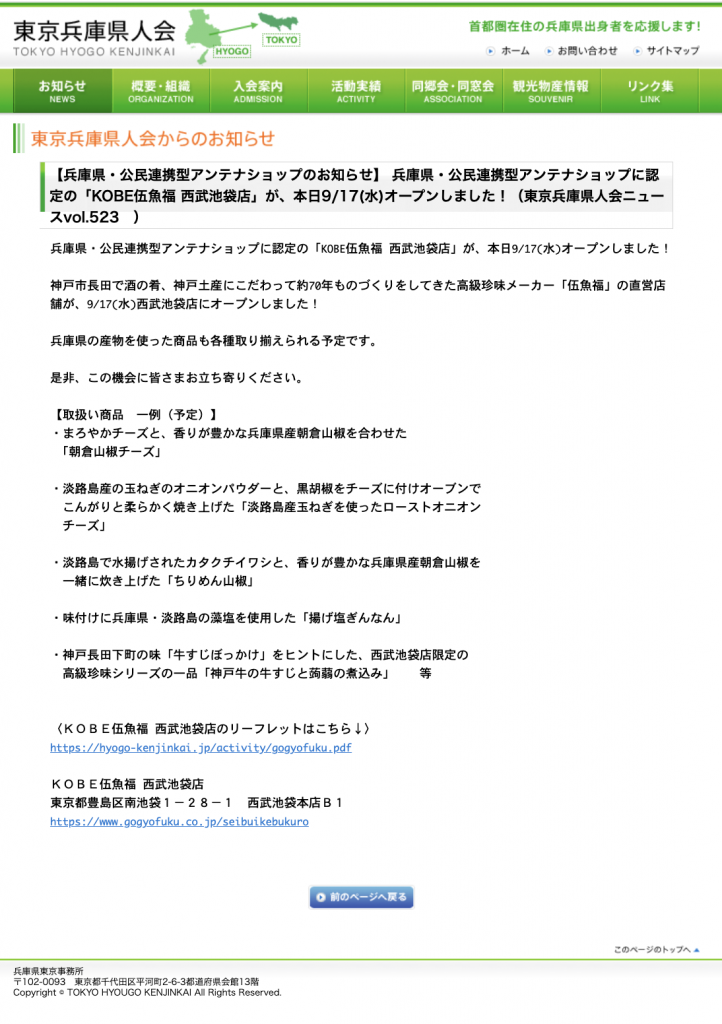 東京兵庫県人会のウェブサイトでもご紹介いただいています。