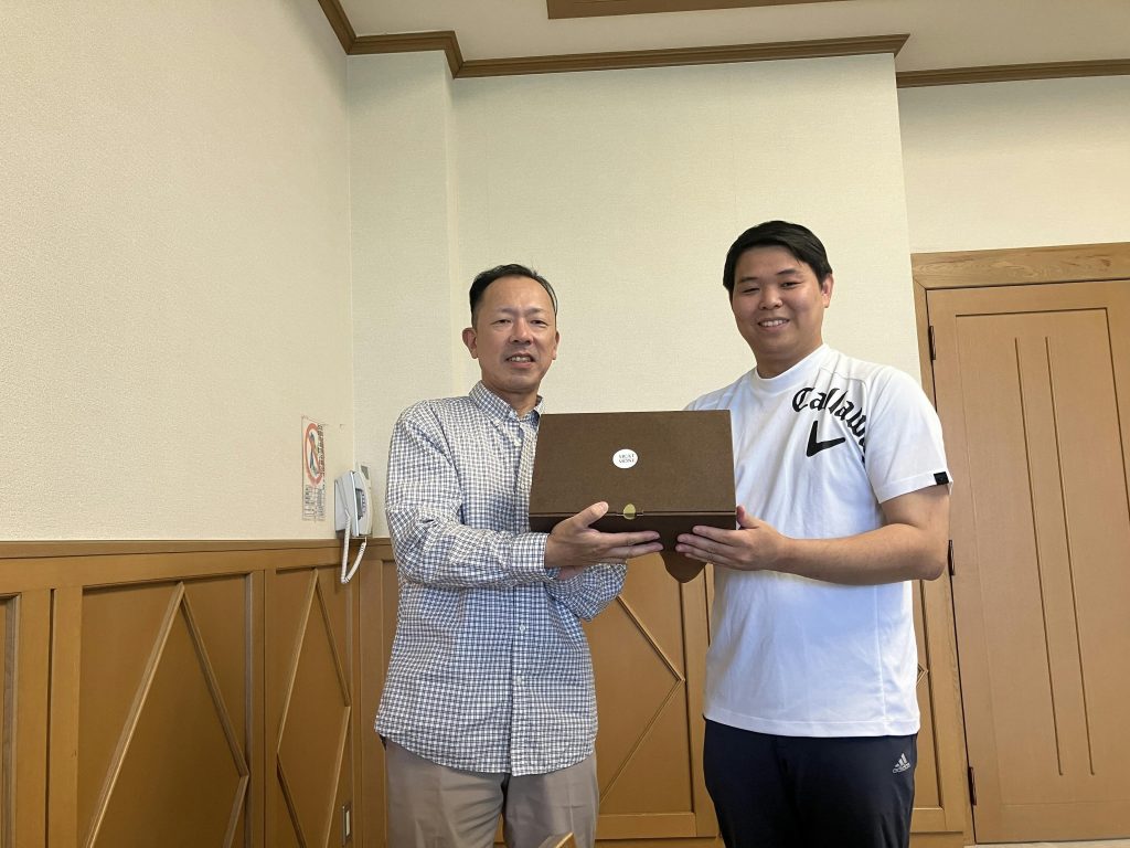 優勝した加茂田課長には、恒例の牛肉が贈られました。