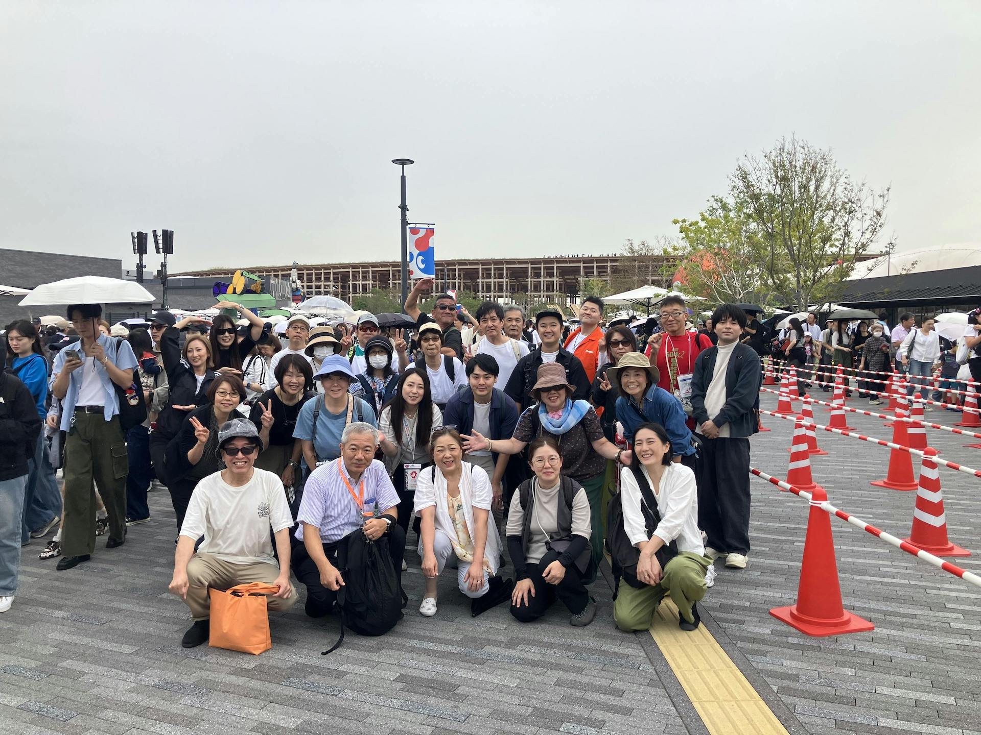 9時に本社前をバスで出発、西ゲート到着後、現地集合のメンバーと合流して記念撮影。