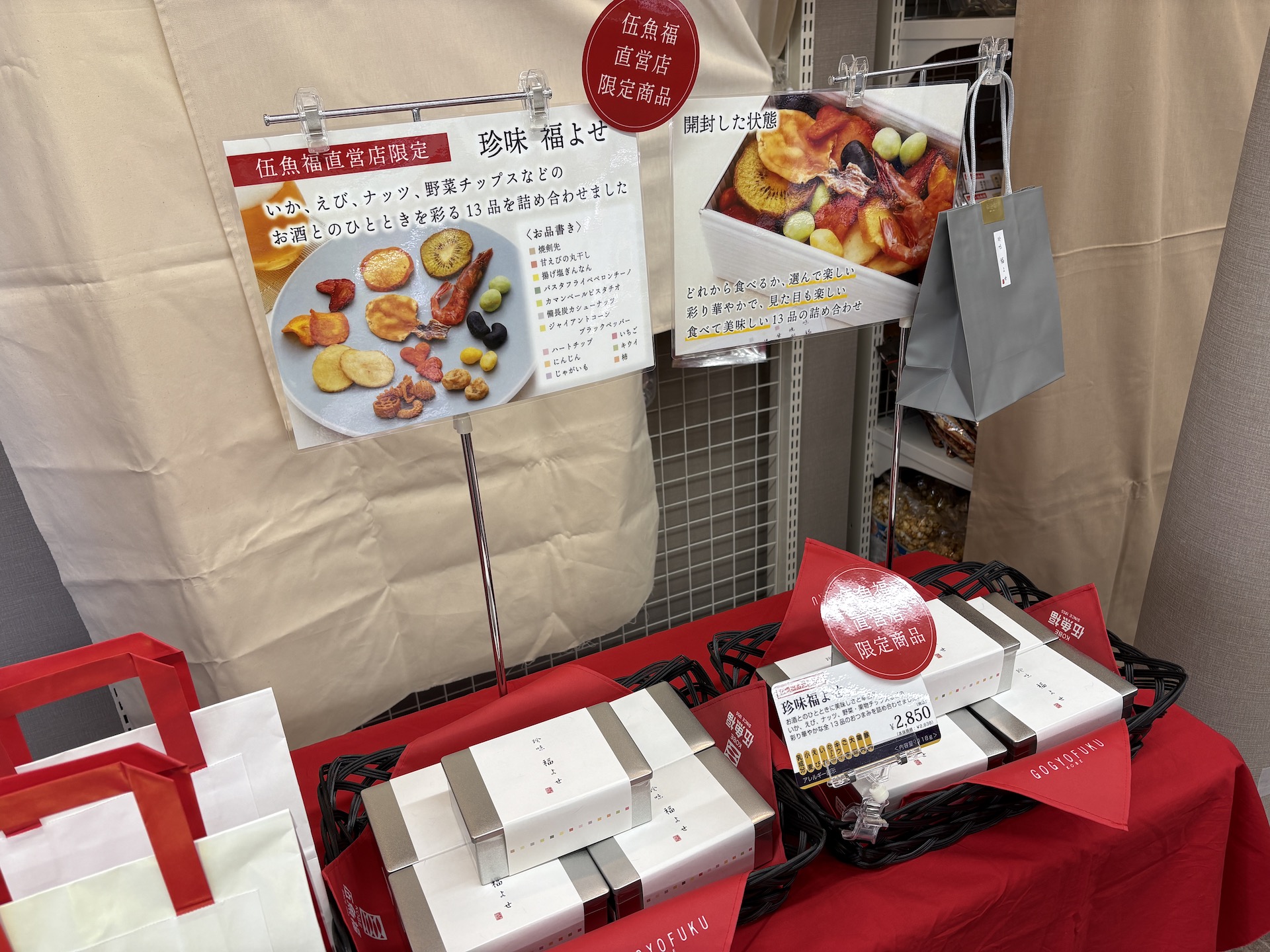 直営店限定商品のおつまみ版吹き寄せ「福よせ」。