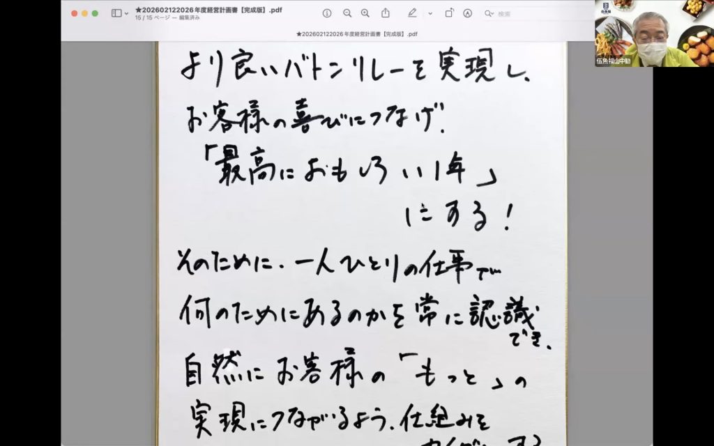 2026年度もお客さまに喜んでいただき、目標を達成すべく努力を続けましょう。