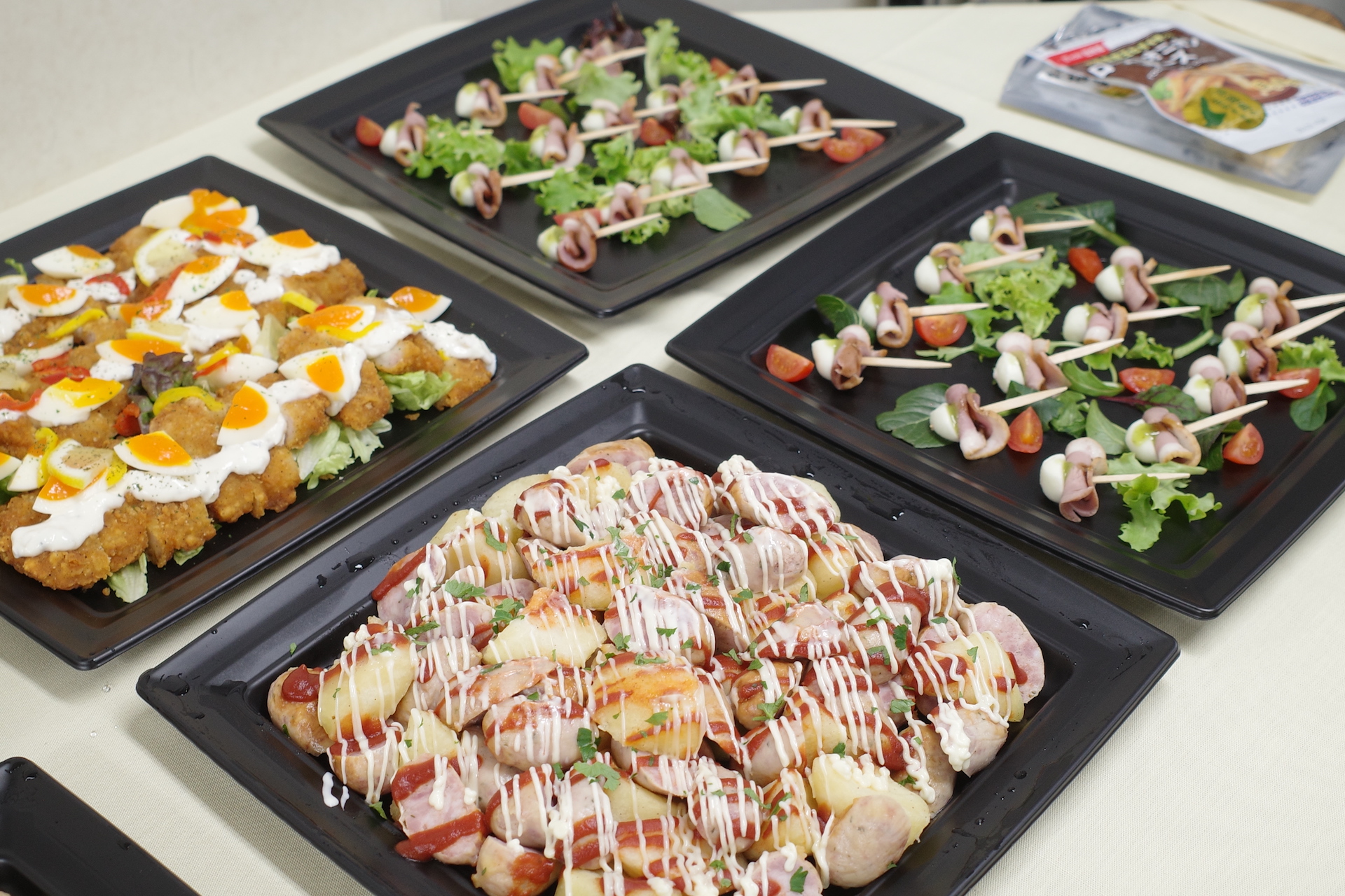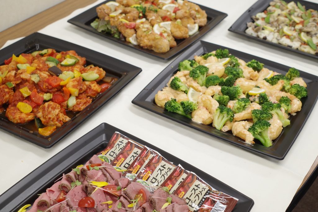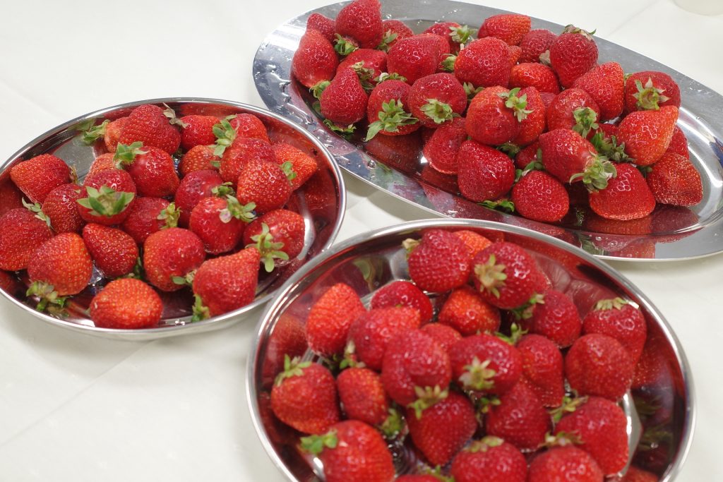 中西社員の乾杯の発声の後、ケータリングの料理、差し入れのいちごを食べながら懇親。
