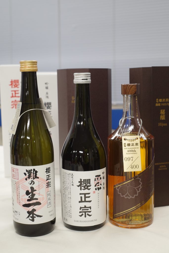 櫻正宗さん(神戸市東灘区)からいただいた櫻正宗純米酒灘の生一本、吟醸原酒櫻正宗、創業400年を記念して製造された貴重な「秘醸」(オーク樽で19年熟成、400本限定)。