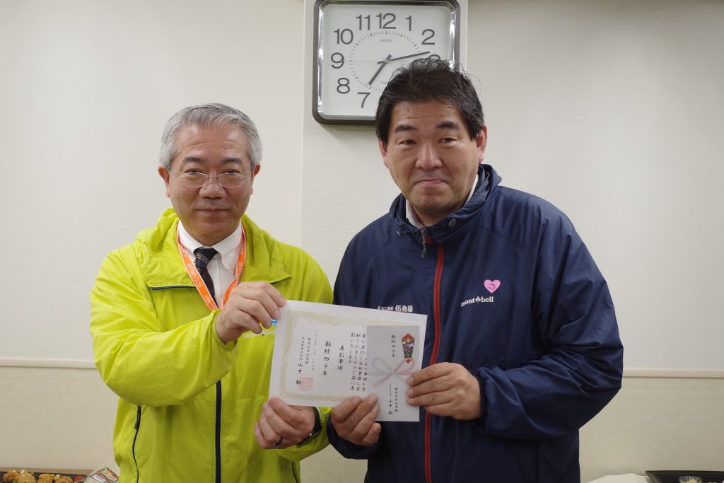40年の永年勤続表彰を受けた矢引幸二課長です。