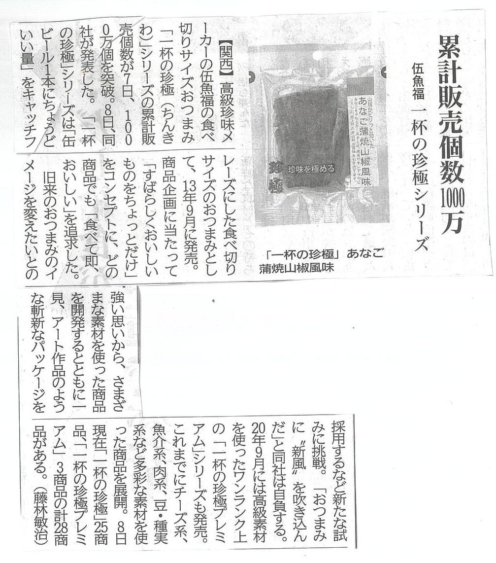 日本食糧新聞に「一杯の珍極シリーズの累計販売個数1000万個」が掲載されました